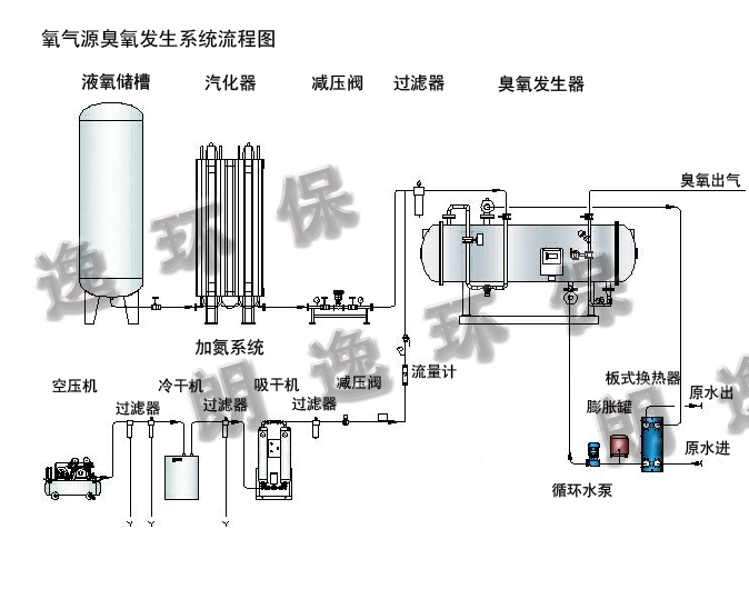 當冷卻水水質不好的情況下,一般采用封閉式循環冷卻水系統,外部采用水質相對較差的水源通過板式換熱器對內循環水冷卻。而內循環水一般采用去離子水或軟化水,保證對臭氧發生器放電室不腐蝕,不結垢。