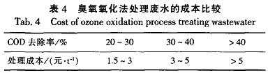 2.4臭氧氧化法處理成本估算臭氧氧化的成本主要是設備投資、電耗及處理尾氣的成本。其處理成本估算見表4。