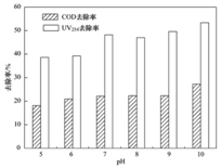 圖 1pH對 COD和UV254去除的影響Fig.1Effect of pH on the removal of COD and UV254during ozonation