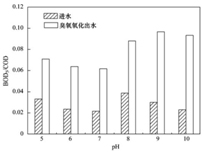 圖 2pH值對石化二級出水可生化性的影響Fig.2Effect of pH on thebiodegradability of secondary effluent during ozonation